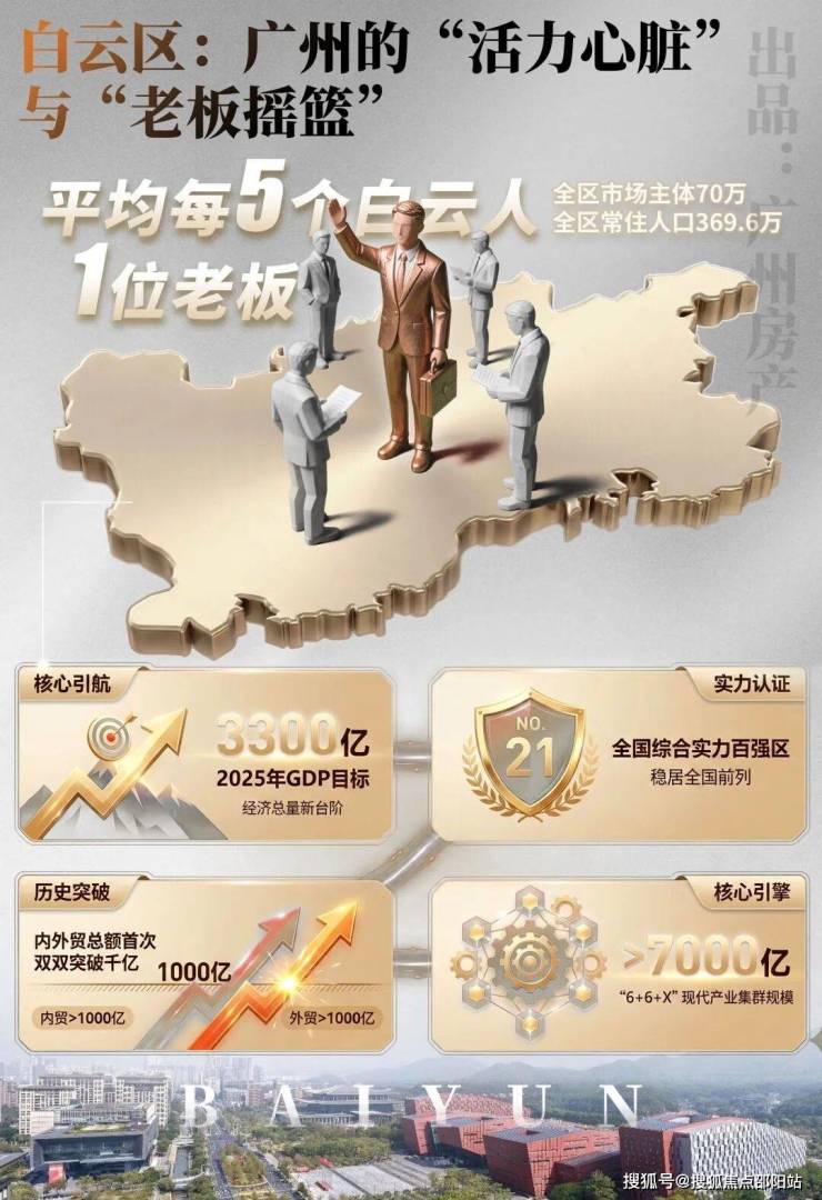 🔹2025年白云区GDP突破3300亿,增速连续两年全市第二,首创“内外贸双千亿”,跻身全国百强区前列。白云新城作为白云经济的核心引擎,凭扎实的企业根基,包揽白云GDP半壁江山。