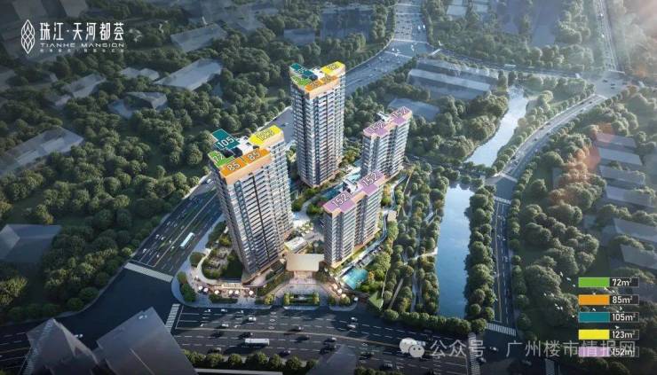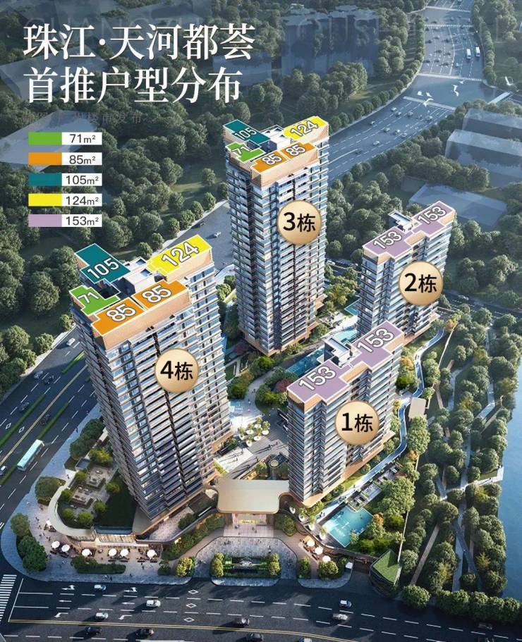 珠江•天河都荟属于新规高使用率产品,2.0-2.5超低密度,打造的都是核心区少见15层起小高层,户户朝南,超宽楼间距,非常舒适宜居。