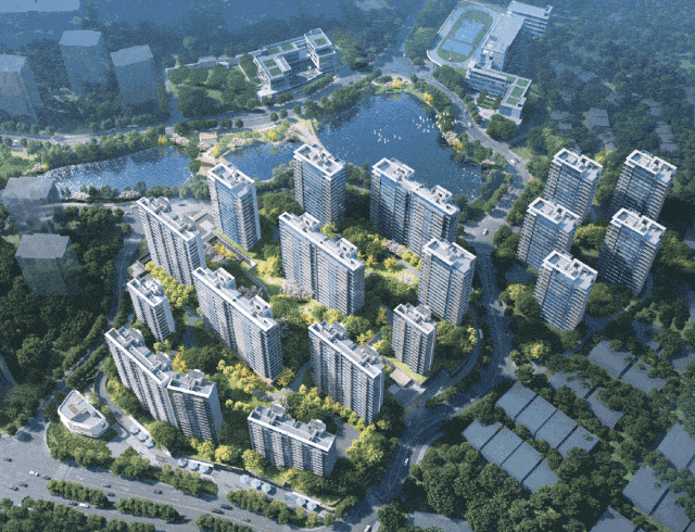 双湖环绕的月亮湖与太阳湖经三重生态净化,水质达二类标准,可泛舟游湖、垂钓观景。社区内保留原生古树,结合243万㎡山湖林海(相当于3.5个天河公园),打造四进花园、三轴十境,归家即享度假体验。