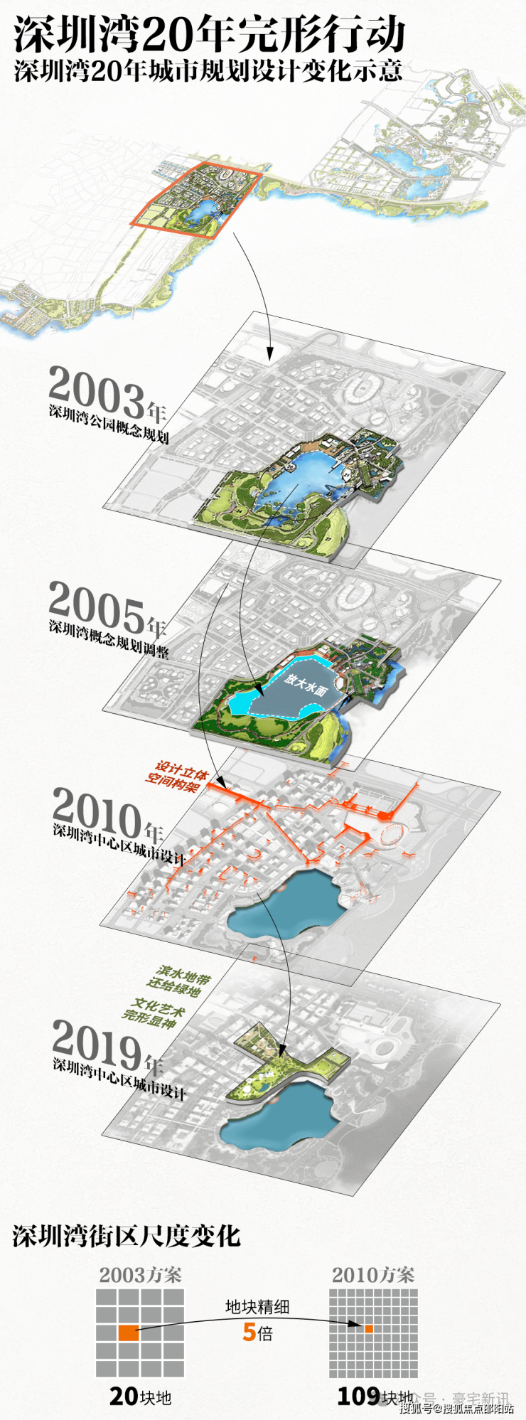如果拿2003年的南山分区规划和现在相比,你会发现,后海中心区的地块数量从原本的20余块到109块,足足翻了五倍。