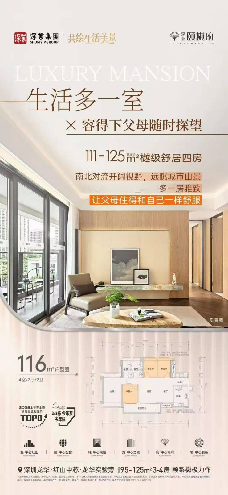 更主要的是产品的精研,给予深圳精英一种精细化居住品质。项目目前一期在售2-3栋78-125㎡3-4房,二期5-6栋99-116㎡即将加推