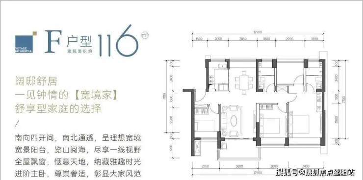 116㎡的4房2厅2卫,F户型,设计的是竖厅南北通透格局,客厅3.8米开间,四开间朝南,4个卧室分别做到了主卧18.02㎡/次卧12.3㎡/次卧8.7㎡/次卧8.37㎡(包含墙体飘窗),得房率约:88%(包含赠送),阳台主朝西南或东南向。