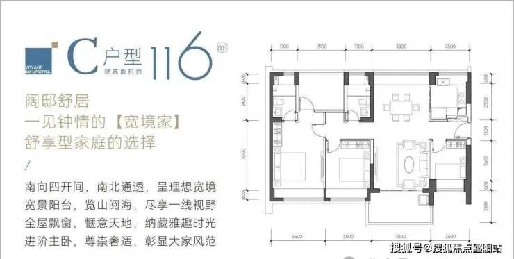 116㎡的4房2厅2卫,C户型,设计的是竖厅南北通透格局,客厅3.8米开间,四开间朝南,4个卧室分别做到了主卧17.85㎡/次卧11.4㎡/次卧9.3㎡/次卧8㎡(包含墙体飘窗),得房率约:93.13%(包含赠送),阳台主朝西南、东南或正南向。