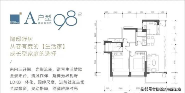 98㎡的3房2厅2卫,设计的是经典竖厅格局,LDKB一体化设计,客厅3.6米开间,三开间朝南,3个卧室分别做到了主卧13.69㎡/次卧11.62㎡/次卧5.76㎡(包含墙体飘窗),得房率约:89%(包含赠送),西南、东南或正南朝向。