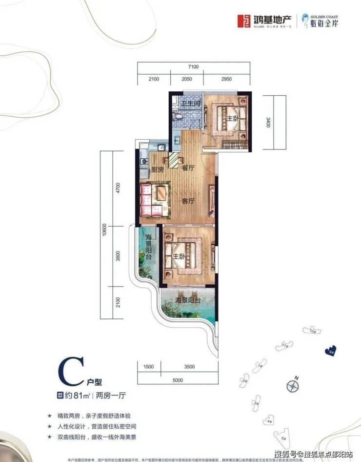 【C户型】81㎡ 精致两房一厅私密空间布局,双曲线阳台设计,盛揽壮阔外海海观。