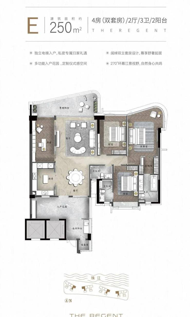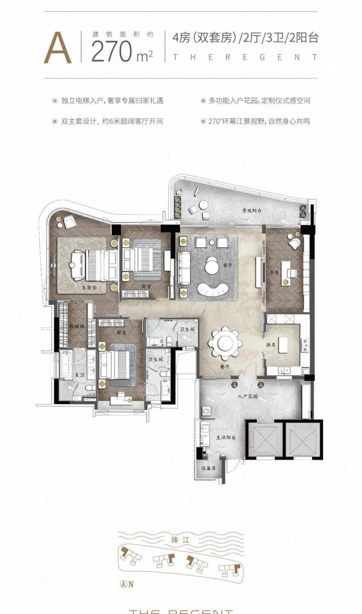 南天名苑项目位于洛溪岛的岛尖,是香港霍英东集团在广州城市中轴打造大型低密度岛尖江景豪宅,业主在室内可以近览三江汇聚的壮美江景,远眺CBD的繁华景致。