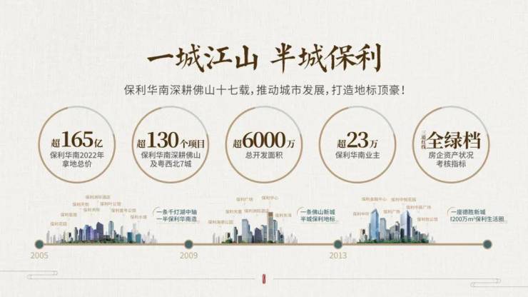 保利作为行业TOP3中唯一保持0踩线的优质“绿档”央企,拥有强大品牌实力及现金流,始终坚持引领城市建设及发展的理念,推动一座又一座新城建设,并沉淀近30年的豪宅打造经验,是资产配置的最佳选择。