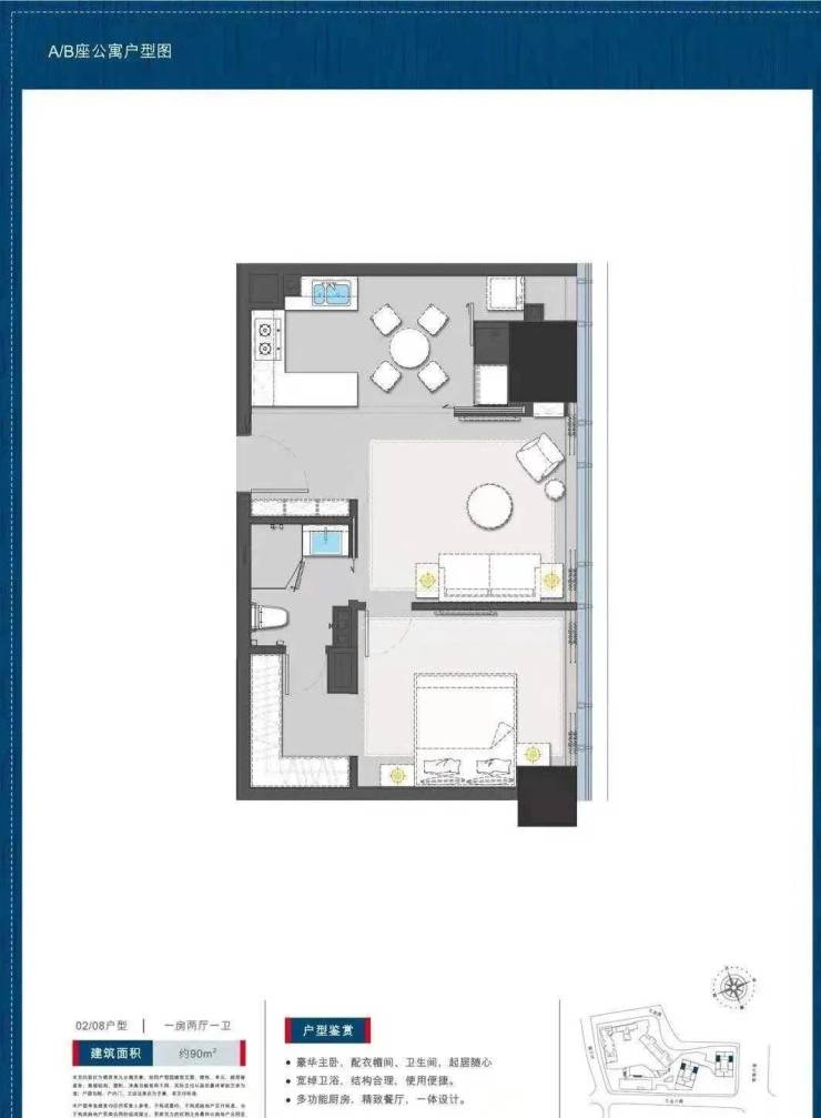 公寓90平户型一房一卫: