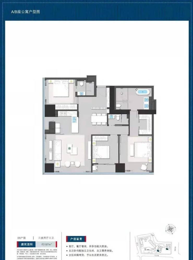 公寓197平户型三房两卫: