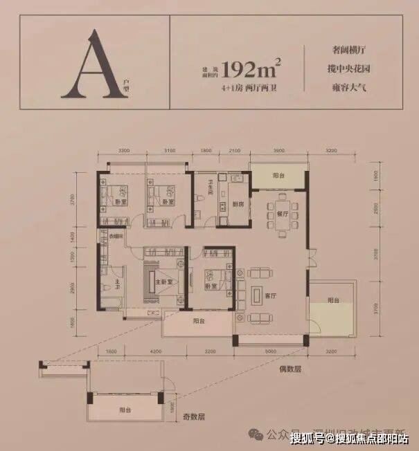 💎在售户型:A户型192㎡4+1房