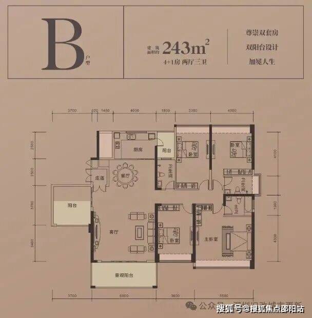 B户型243㎡4+1房、