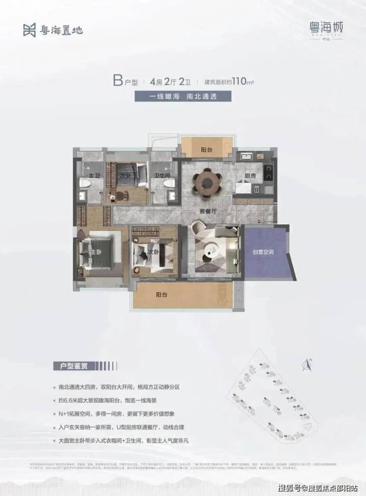 B户型:建面约110m² 4房2厅2卫