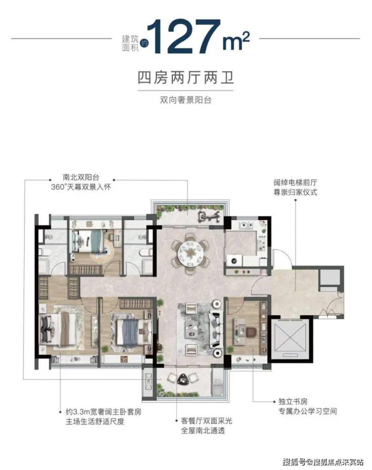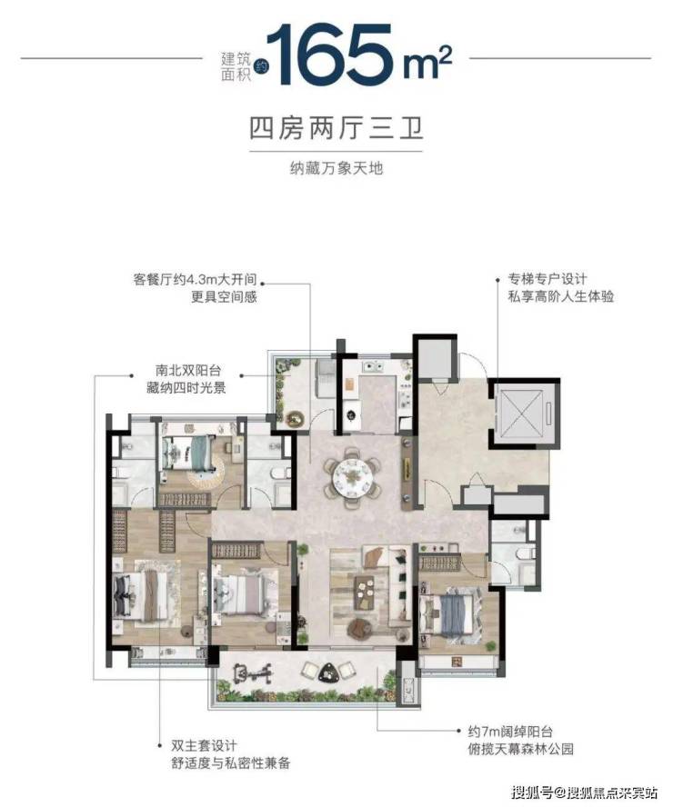 再来看看产品。本次振业天成主推建面约105-165㎡四房户型,改善为主,均为全南向设计。