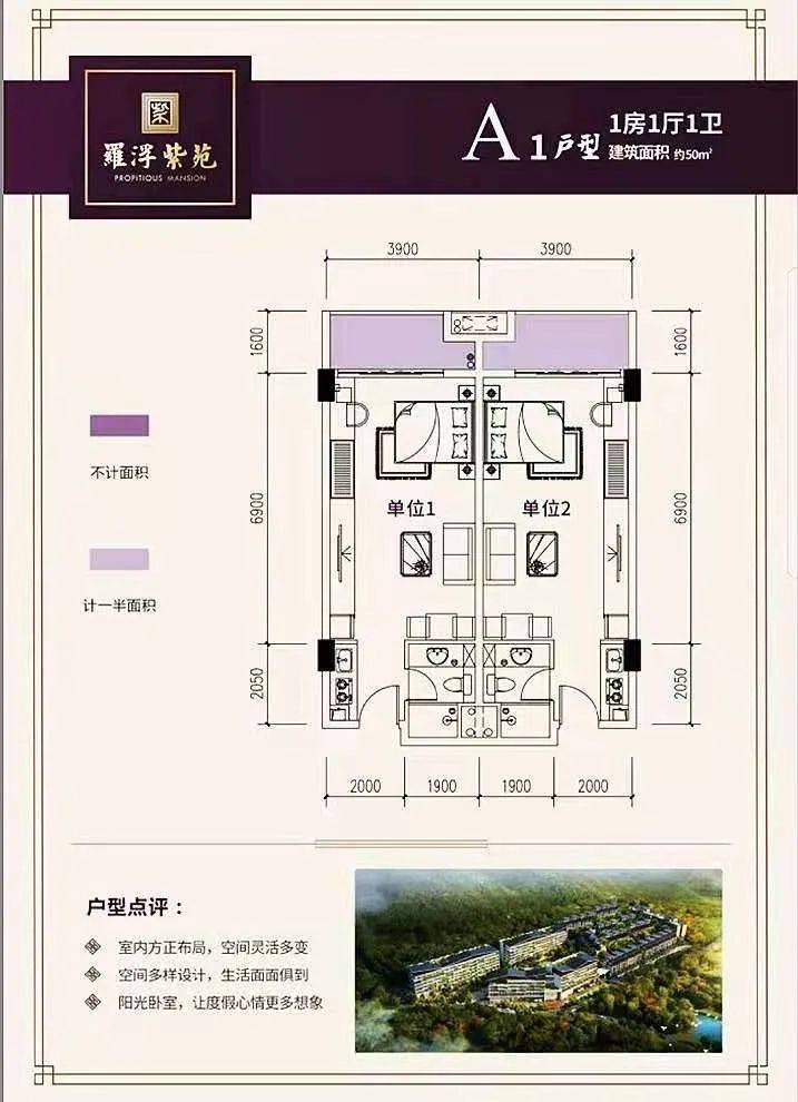 建筑面积约50㎡,总价36万起,保底1800租金+20%利润分红,收租约6万/年
