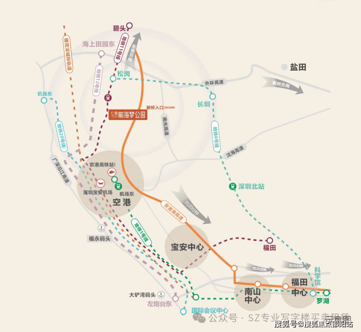 港深西部快线(规划)、穗莞深城际(在建)、深茂铁路、深大城际(在建),迅速连接湾区周边城市。