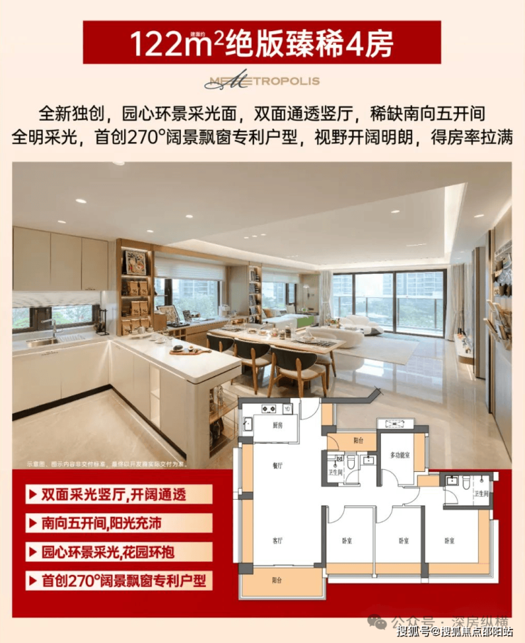 ① 四开间南向布局,轻奢大四房进阶圈层门槛
