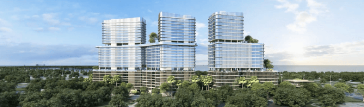 特邀执笔过水立方等国际地标的CCDI悉地国际精英团队进行建筑设计。设计理念为打造自贸港的时代之帆,形态似浩海扬帆的新船,乘风向前,体块错动,形成丰富的天际线,筑造出错落有致的、现代感极强的建筑物,未来将成为三亚又一艺术建筑坐标。