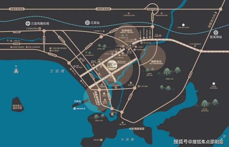 定位为三亚总部经济及中央商务启动区,承接其余三大板块上下游产业,整个三亚的财富心脏。项目周边储备土地的预估价格已经接近5万/m², 地块极具稀缺。
