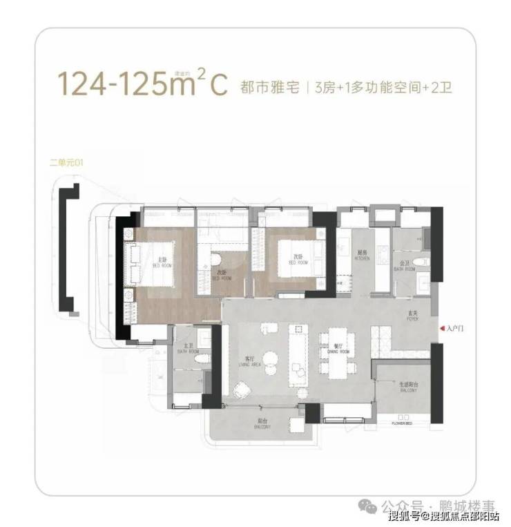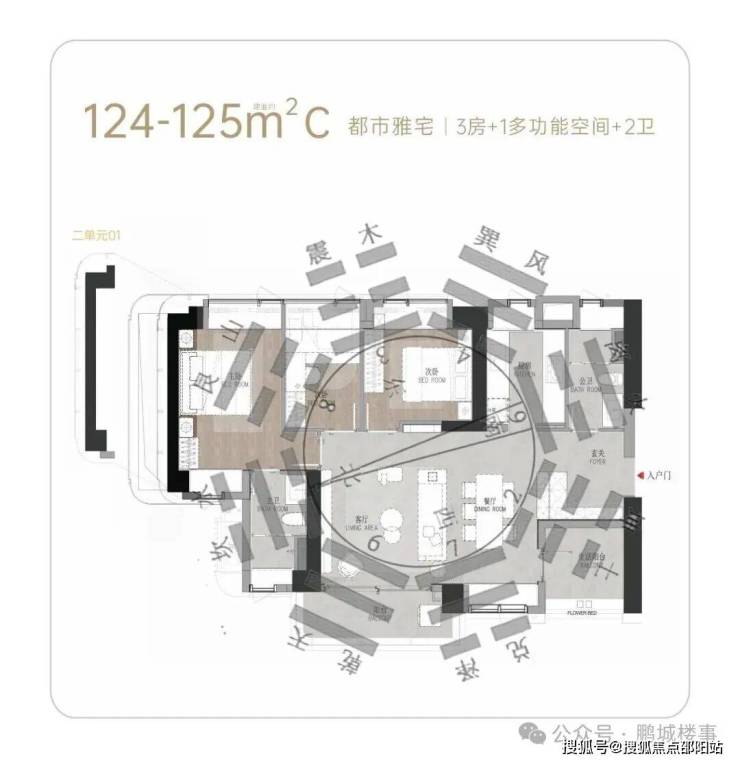 01户型125 ㎡-约1183-1261(横厅通透3+1房)