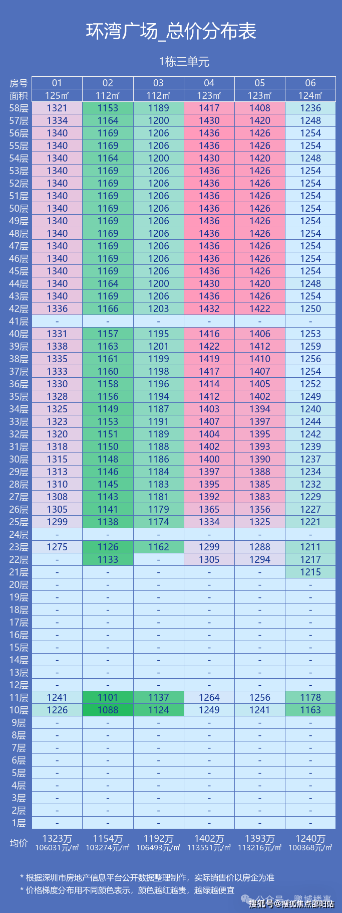 楼层总高:03地块 T7/T8 (1/2 单元53层)60 层高,T9/T10 栋 (3/4 单元46层) 5单元45层。6单元15层 ,02地块T5(2单元)59层,T6(3单元)58层单层高:住宅112-125㎡3.05米,183-253㎡-3.3米,270㎡3.5米,公寓3.5米/3.6米