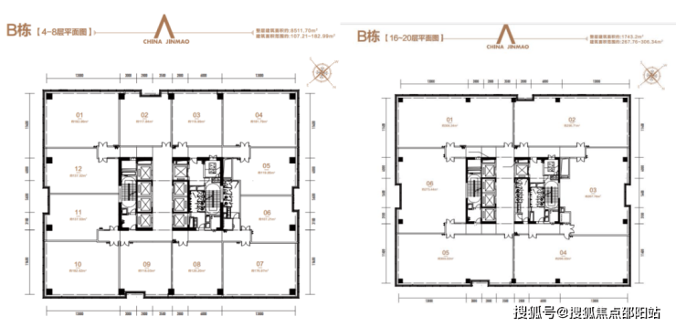 层高设计:9.8米挑高大堂,首层层高5.6m,标准层高4.2m,最高层高5.1m,楼栋总高度108.65米