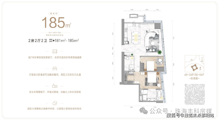 🔴46 层到 68 层是 70 年产权的天际住宅(约3.8万㎡)——IFC琴澳湾1号,拥有185-425㎡户型,IMAX天幕大境、奢阔海景、云端之上的尊贵人居和社交主场;