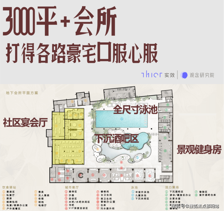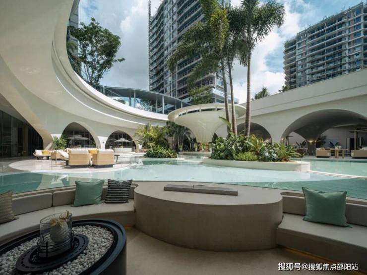 约 3000㎡的下沉式会所涵盖成人泳池、儿童泳池、健身房、私宴餐厅、下沉酒吧等多样邻里复合功能,为业主提供了一个社交、健身的好去处。