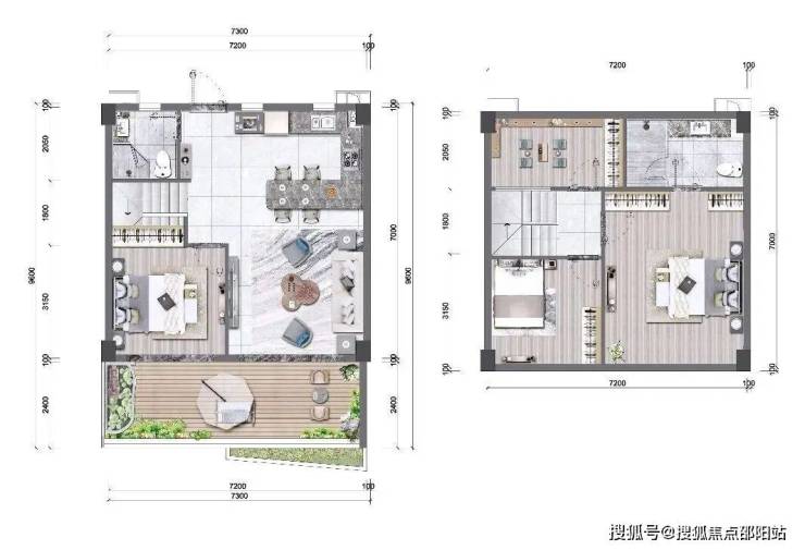 1F:客厅及厨房、客卧、超大观景阳台、干湿分离卫生间