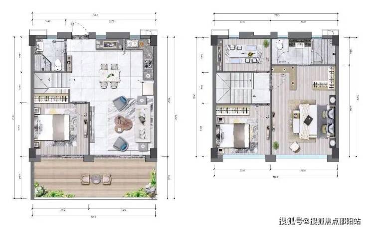 1F:客厅及厨房、餐厅、客卧、超大观景露台、干湿分离卫生间