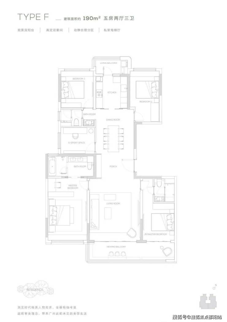 190产品为五房两厅三卫产品,充满了对云端人群生活的独特见解,南向双主卧,中西厨布局,打造纵向超长LDK一体化空间,产品所体现的不只是居住产品,更是特属客群所拥有的生活方式。