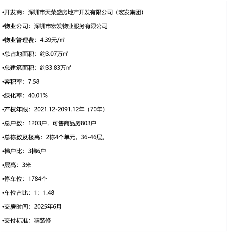 项目位于光明区公明片区,原为宏发达叁城市更新,占地约3万㎡,总建面约30万㎡,规划建设2栋高达46层的150米、2栋36层的120米的商住楼,以及一所配套小学。其中A635-0259地块,总占地面积约2.24万㎡,总建筑面积约24.94万㎡,计容建筑面积约18.23万㎡,容积率7.58,绿化率40.01%,共由2栋4个单元住宅组成,其中3栋1/2单元住宅36F,3栋4/5单元住宅46F,3栋3单元写字楼38F,4栋是1所9班制幼儿园,