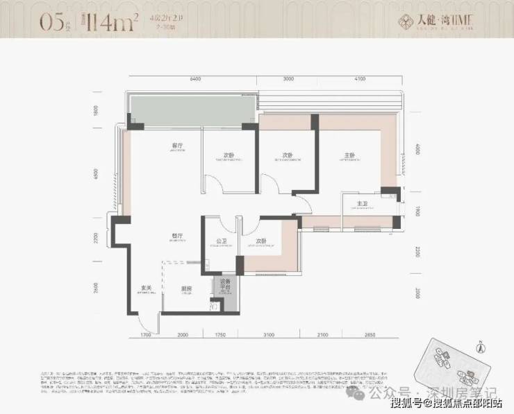 05户型,约114㎡4房2卫
