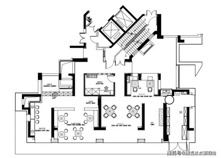 架空层作为室内-室外、公共-私密、自然-家居的过度空间,发挥着居室功能外延,社区交流拓展的作用。结合客研究成果,本案架空层被定义为融合轻社交与轻办公的“自助社区客厅”。同时融合艺术文化元素与功能细节的思考,致力于为全年龄业主进行局部模块的多元化、人性化打造。