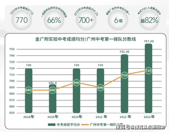 白云广附云湖学校师资亦是势力雄厚,近年来,白云广附中考成绩一直名列广州前茅,以白云广附核心学校金广附为例——继广州中考成绩五连冠后,2023年又拿下了广州中考最高分770的好成绩。