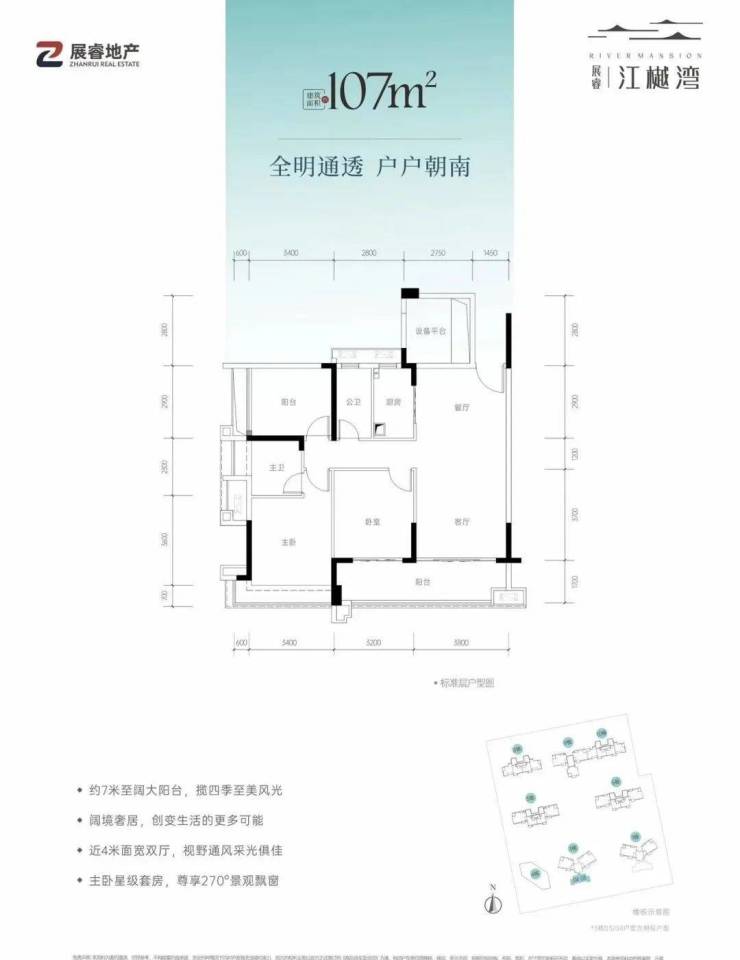 107㎡超高使用率四房 南向瞰江 近7米大陽台