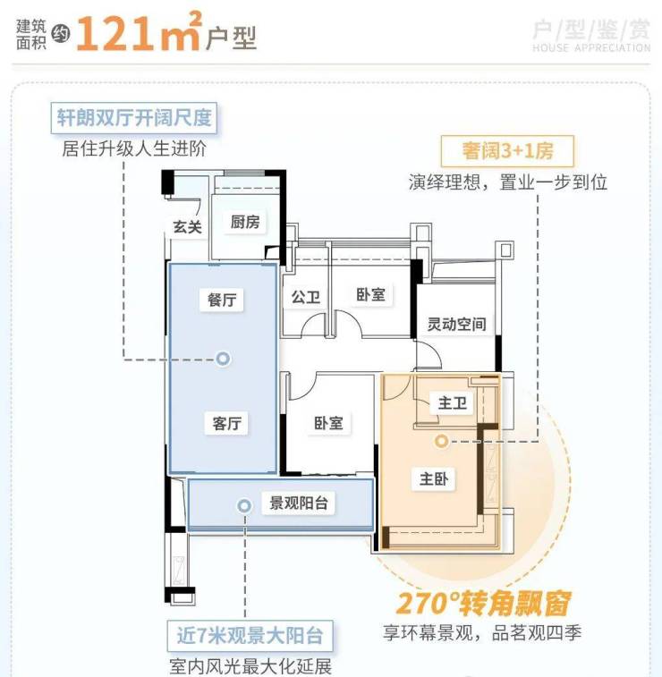121㎡奢闊戶型 近7米大陽台 置業一步到位