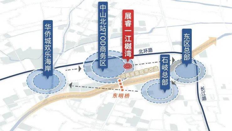 展睿 | 江樾灣,位於岐江新城核芯區、中山北站TOD商務區,搭乘深茂高鐵三站到深圳通過“一橋一隧”享千億總部經濟區配套,是中山城市新中芯所在。