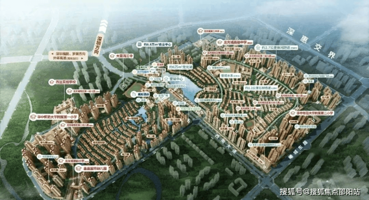 龙光城位于大亚湾西区临深片区西南大道88号,地理位置优越,毗邻深圳,与坪山无缝对接,距离深圳边界线仅100米,是临深置业第一大盘。