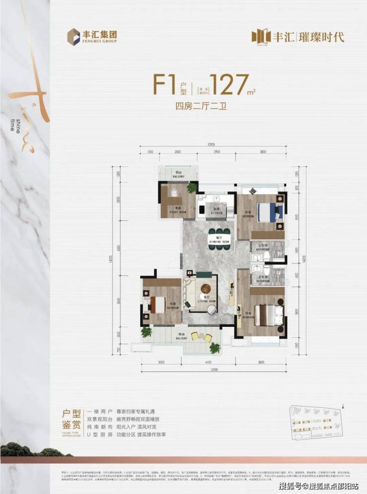 建筑面积约127㎡四房优势也非常突出,为罕见的小高层一梯两户设计,整体户型非常方正,南向三开间朝阳,拥有较宽的南向阳台,享受极致的阔绰设计及舒居尺度。