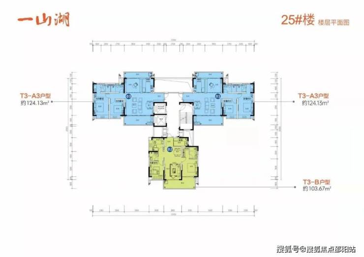 面积:103-125㎡三房两厅两卫