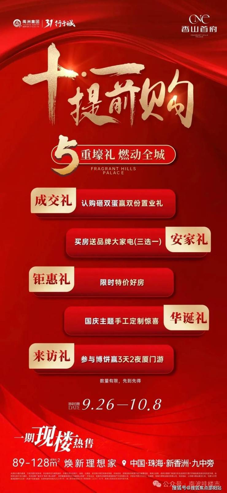 禹洲・香山首府:新香洲现房在售建面约89-128㎡,9.26-10.8推5重好礼,到访博饼赢厦门3天2夜游