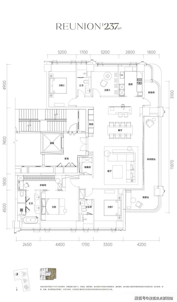 💥约237㎡ | 四房三卫两厅 | 三面采光 | 双主卧套房| 270°环幕视野