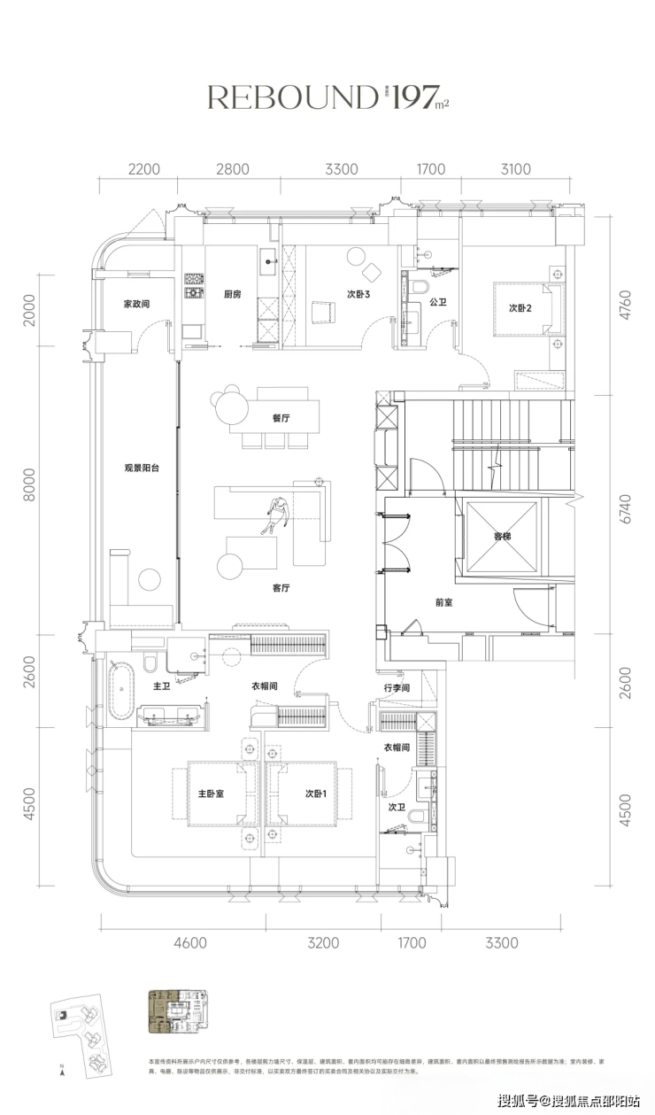 💥约197㎡ |四房三卫两厅 | 三面采光 | 主卧套房270°转角奢华空间全景落地窗