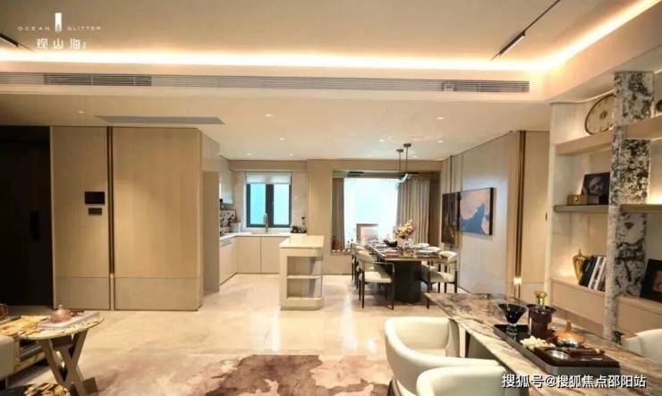 餐客厅超7米的嵌入式空间,能“隐形”玄关柜、电视柜、收纳柜等,带来巨大收纳空间,也更显平整洁净。