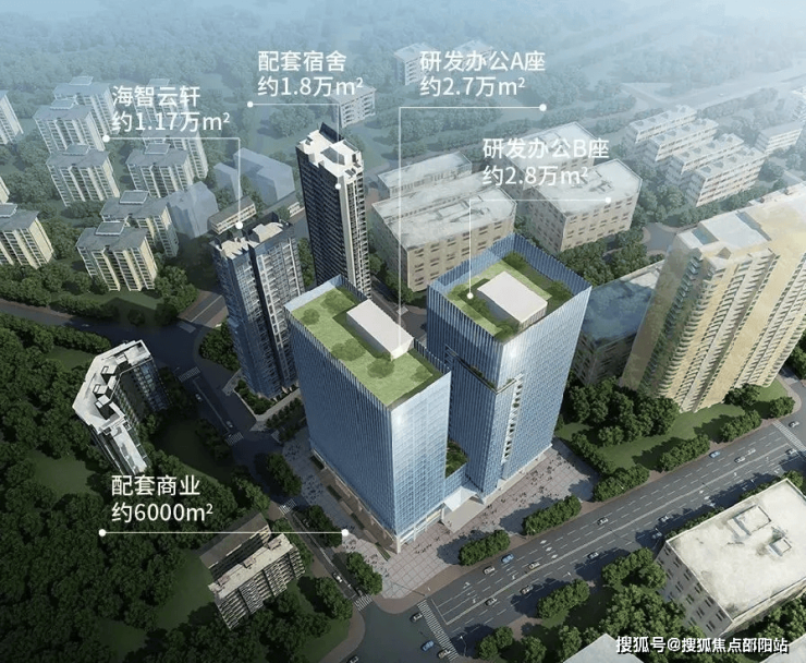 【多元活力业态组合】海智云谷项目涵盖约5.67万㎡研发办公、1.8万㎡配套宿舍、0.6万㎡配套商业以及1.17万㎡住宅,构筑精致城市综合体。