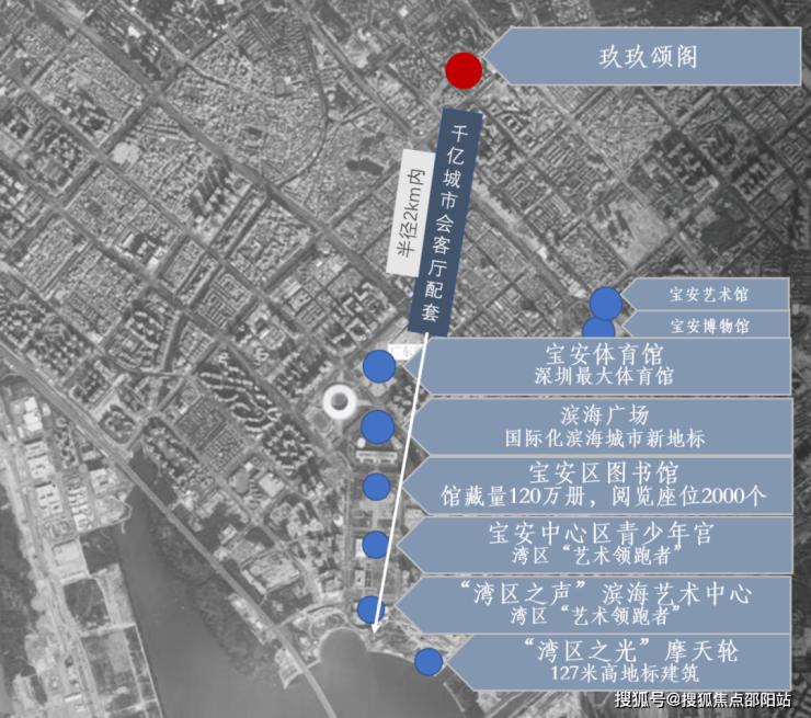 2km范围内悦享千亿大湾区会客厅配套:包括现在已经在运营的“湾区之光”地标摩天轮、欢乐海港、滨海文化公园、宝安体育场、图书馆、青少年宫、演艺中心等。
