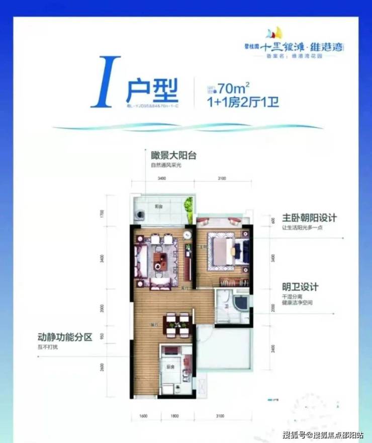 在售户型:70-80㎡1+1房2厅2卫