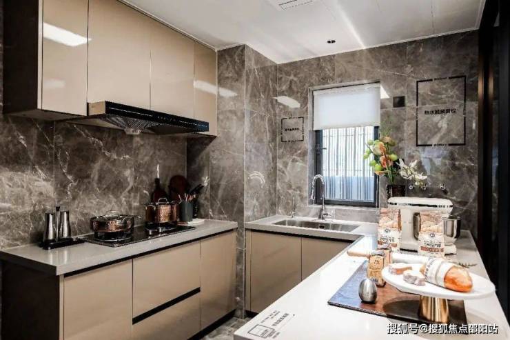 厨房抽拉水龙头、大单盆水槽,对付中西厨餐具清洗都绰绰有余;操作台4边小挡水,碰倒杯子也不担心,干净不藏污,末端净水器超强过滤,保障了家人的饮水安全;饭后洗碗动动手指头,轻松搞定;灶下橱柜上层翻板,下层抽屉升级设计,不仅方便煤气检修,碗筷收纳使用更加便捷;收纳比传统户型多出2m³;灵动岛岛台还符合人体工学设计预留20厘米深度放脚位,看似不起眼的地方,都做了最精细化处理。