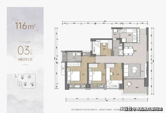 建面约116㎡的全南向户型,更实现从三开间朝南到四开间朝南的飞跃,既能满足四口之家又能容纳三代同堂,育娃、养老都毫无压力。