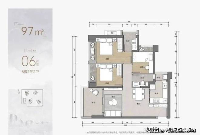 建面约97㎡的户型,产品不论是在功能设计上还是空间利用率上都是极其考究的。三开间朝南;双阳台的设计把每一片空间都高效利用,约3.6米开间,约2.4米进深奢阔景观阳台,让生活每天充满阳光与健康;厨房L型布局,一个转身即可完成洗、切、炒、取;黄金动线、操作流畅;厨房与生活阳台相连,明亮的采光会提升烹饪时的愉悦感。